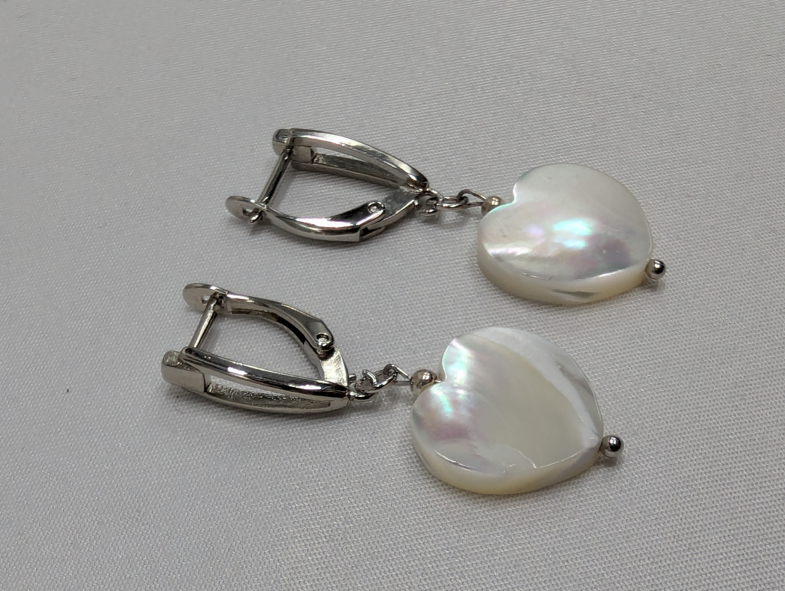 Перламутр идеально подходит к 90% одежды из гардероба каждой девушки. К тому же сердечки на сережках добавляют настроение.